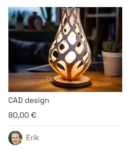 Auf dieser Seite ist es allen Nutzern möglich verschiedenste Produkte zu kaufen und zu verkaufen. Das können 3D Drucker, Druckmaterialen, Zubehör aber auch digitale Produkte, wie zum Beispiel CAD Konstruktionen sein.
